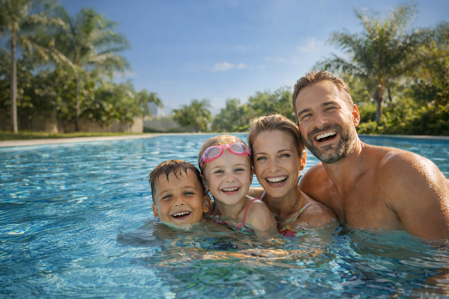 Desfrute de momentos de lazer sem cabelos ressecados, olhos vermelhos e cheiro de cloro na pele.
